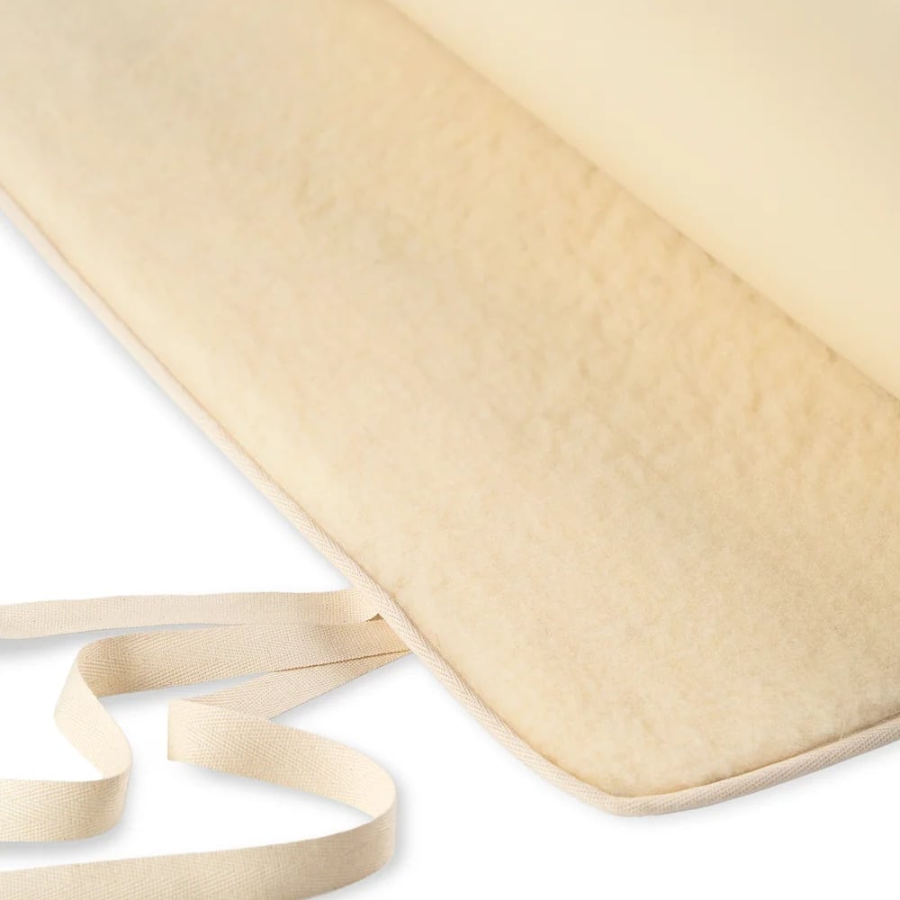 De mat van schapenwol biedt warmte en optimale ondersteuning
